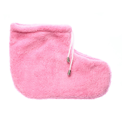 Носочки махровые для парафинотерапии качественное и комфортное изделие из мягкой двухсторонней светло-розовой махры Велсофт на шнурке-завязке белого цвета. Края шнурка украшены бусинками серебряного цвета.
