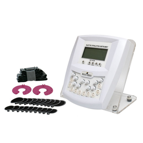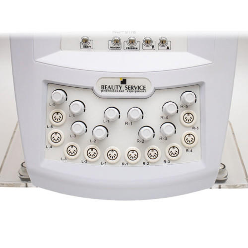 Задача данного аппарата коррекция фигуры и подтяжка груди. Этот аппарат поможет сформировать красивые контуры тела, выровняет осанку, подтянет ягодицы, сделает живот упругим. Самая большая ценность миостимуляции и в частности аппарата ND-9116 это Высокая эффективность в устранении локальных недостатков, например, жировые валики в области колен или дряблость внутренной стороны бедер. Сама по себе процедура не сложная, а благодаря автоматическим программным режимам в аппарате задействованность косметолога в процессе процедуры минимальна. Все, что требуется от косметолога это правильно расположить электроды на теле клиента. Для этого необходимо понимать мышечное строение человека. Электроды нужно закрепить, таким образом, чтобы между активным и пассивным электродом сокращалась мышца той области, которая нуждается в коррекции. Чтобы обеспечить сокращение нужно применять специальный токопроводящий гель, а для надежной фиксации электродов пользоваться эластичными ремнями-резинками. Аппарат комплектуется необходимым набором электродов и ремней. Косметолог может регулировать интенсивность тока так, чтобы ощущения клиента были комфортными. В аппарате предусмотрено 4 типа волны, которые отличаются своим предназначением: для устранения жировых отложений, для подтяжки и тонизации мышц, эффект массажа и релакс-режим. Более детально смотрите в таблице. В аппарате предусмотрено: 9 автоматических программ 10 каналов 4 типа волны Технические характеристики: Мощность аппарата: 30 Вт Интенсивность тока: 24 мА Длительность импульсов: 400µs, 2500 µs, 3500 µs