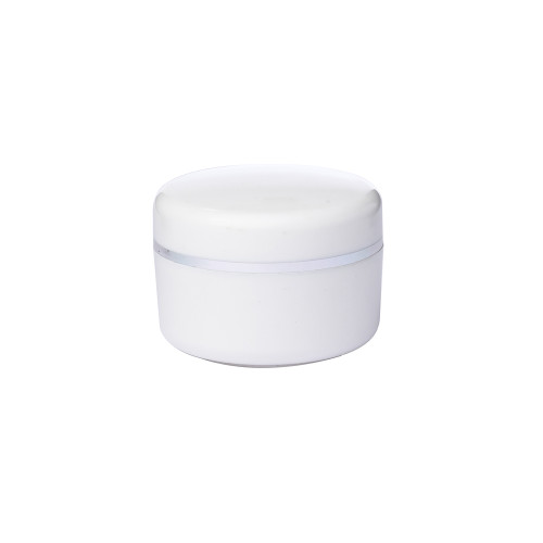 Баночка, емкостью 30мл с плотно закручивающейся крышкой качественное, комфортное, безопасное и небьющееся изделие из белого пластика для хранения и транспортировки продукции косметологического и бытового назначения (крема, лосьоны, сыпучие материалы и пр.). Крышка баночки декорирована серебрянной полоской.