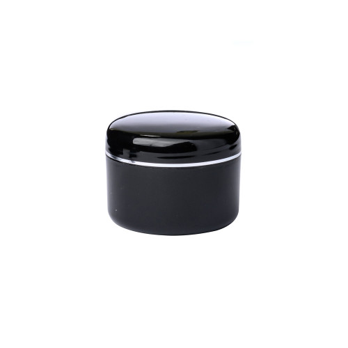 Баночка, емкостью 50мл с плотно закручивающейся крышкой качественное, комфортное, безопасное и небьющееся изделие из черного пластика для хранения и транспортировки продукции косметологического и бытового назначения (крема, лосьоны, сыпучие материалы и пр.). Крышка баночки декорированан серебрянной полоской.