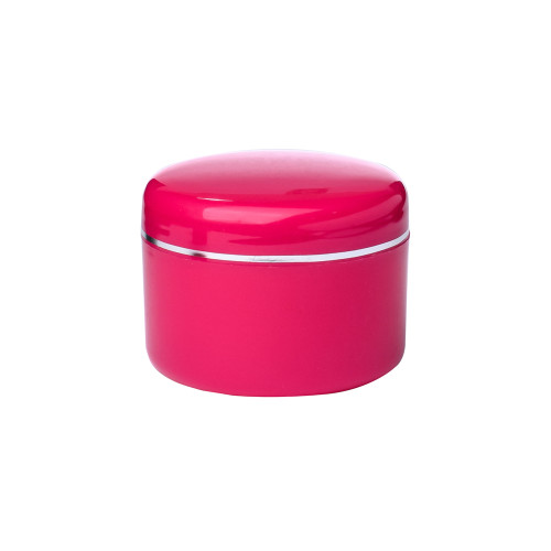 Баночка, емкостью 50мл с плотно закручивающейся крышкой качественное, комфортное, безопасное и небьющееся изделие из малинового пластика для хранения и транспортировки продукции косметологического и бытового назначения (крема, лосьоны, сыпучие материалы и пр.). Крышка баночки декорирована серебрянной полоской.