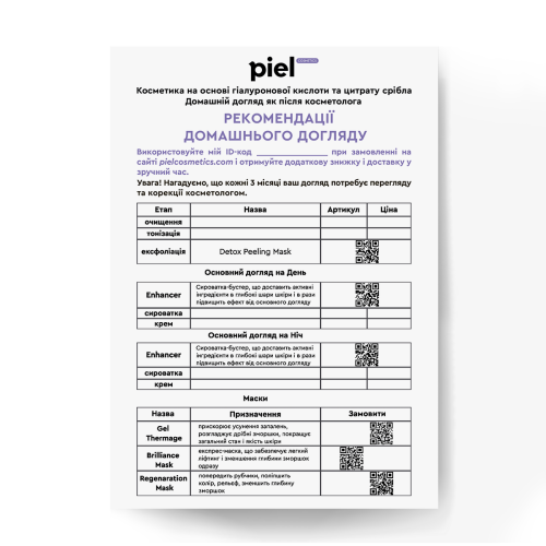 Бланк косметолога для рекомендаций по домашнему уходу (набор 10шт) Piel