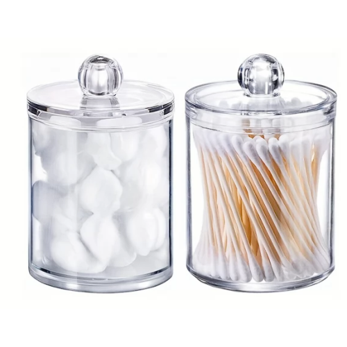 Диспенсер под диски ватные круглый мини стакан с крышкой пластиковый прозрачный