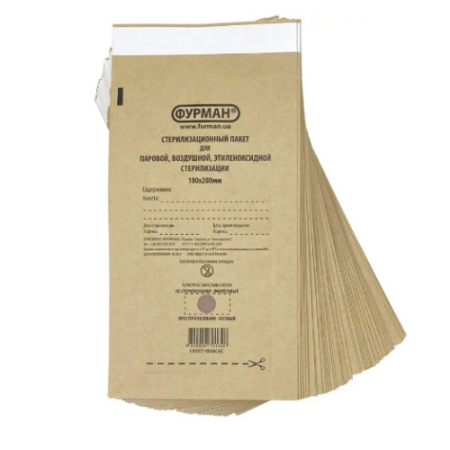 Аксессуары для дезинфекции Крафт-пакет Фурман коричневый 100х200 мм самозапечатывающийся (100 шт/уп) 028