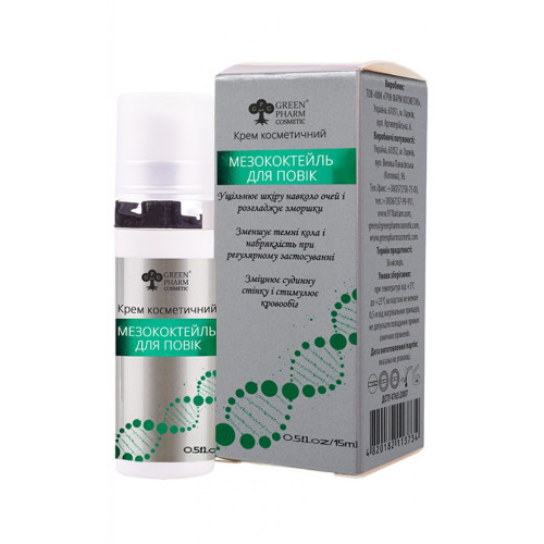 Крем косметический «Мезококтейль для век» Уплотняет кожу вокруг глаз и разглаживает морщины Уменьшает темные круги и отечность при регулярном применении Укрепляет сосудистую стенку и стимулирует кровообращение Активный состав: Acetytetrapeptide-5 активирует выработку коллагеновых волокон Биологически доступная форма омега 3,6,9, Пантенол и комплекс витаминов А, Е, F питают гидролипидный слой кожи Капиляропротекторы: Рутин и экстракт конского каштана Лимфодренажный комплекс экстрактов: череды, хвоща полевого, василька и гуараны Крем косметический «Мезококтейль для век» с нежной текстурой для ухода за зрелой кожей век, склонной к отечности и появлению темных кругов. Уплотняет тонкую кожу вокруг глаз, уменьшает «мешки и темные круги» под глазами, укрепляет сосуды кожи и разглаживает мимические морщины. Активный комплекс, содержащий ацетилтетрапетид, низкомолекулярную гиалуроновую кислоту, пантенол и комплекс витаминов А, Е, F стимулирует образование коллагена и волокон межклеточного матрикса тонкой кожи век, увеличивая ее плотность и упругость. Рутин и экстракт конского каштана уменьшают проницаемость сосудистой стенки и укрепляют ее, предотвращают застой и отечность под глазами. Уникальный комплекс в трансдермально доступной форме омега 3,6,9 жирных кислот, масло виноградных косточек и масло Ши питают, восстанавливают и заполняют липидный слой кожи. Лимфодренажные экстракты: череды, хвоща полевого, василька, гуараны улучшают кровообращение, тонизируют и предотвращают появление отеков, экстракт корня солодки добавляет осветляющий эффект. Способ применения: небольшое количество крема нанести на чистую кожу век, равномерного распределить крем легкими движениями по косметическим линиям - на нижнее от внешнего угла глаза к внутреннему, на верхнее от внутреннего угла глаза к внешнему, дождаться полного впитывания. Наносить 2 раза в день утром и вечером (не позднее, чем за 2 часа до сна). Учитывая накопительное действие пептидов, заметные результаты проявляются через 2-4 недели регулярного использования крема. Для достижения максимального эффекта рекомендуется использование крема в комплексе с лимфодренажным массажем лица. Предостережение: не допускать попадания в гла-за, при попадании промыть водой. Не применять при гиперчувствительности к компонентам состава. Состав (INCI): Agua, Glycerin, Grape Seed (Vitis Vinifera) Oil, Cyclopentasiloxane, Butyrospermum Parkii (Shea) Butter, Propylene glycol, Dimethicone, Steariс Acid, Isopropyl Myristate, Cetearyl Olivate (and) Sorbitan Olivate, Cetylstearyl Alcohol, Acetytetrapeptide- 5, Oleic acid (аnd) Linoleic acid (аnd) α- Linolenic acid (аnd) Palmitinic acid (аnd) Eicosenoic acid (аnd) Erucic acid (аnd) Stearic Acid (аnd) Palmitooleic acid (аnd ) γ- Linolenic acid, Rutin, Horse Chestnut Extract, Bídens Tripartíta Extract, Equisetum Arvense Extract, Cеntaurea Cyanus Extract, Guarana Extract, Glycyrrhiza Glabra Root extract, Methylpyrrolidone, Рerfume, Сarbopol, Triethanolamine, Vitamin Complex AEF, Рhenonip, Вutyl-hydroxyanisole. Не является лекарственным средством. Условия хранения: при температуре от + 5°С до +25°С на расстоянии не менее 0,5 м от нагревательных приборов, не допускать попадания прямых солнечных лучей. Срок годности: 36 месяцев от даты изготовления.
