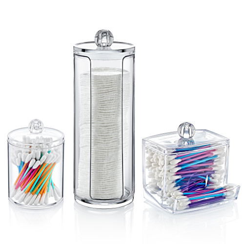 Набор диспенсеров 3 в 1 под диски ватные и палочки пластиковый прозрачный FT 011