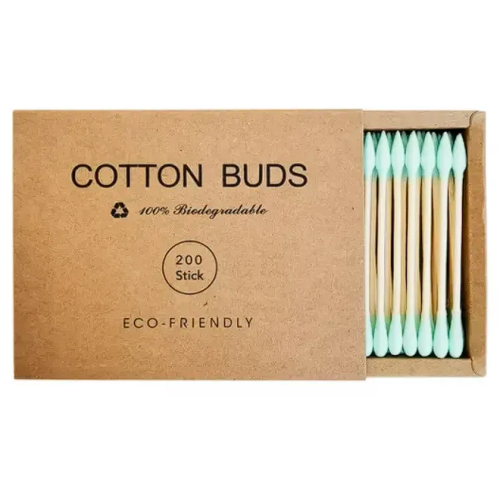 Палочки ватные бамбуковые обычные + острые Cotton Buds зеленые (200шт) картонная квадратная упаковка