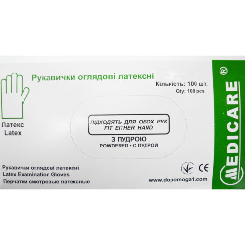 Перчатки латексные Перчатки латексные Medicare 8-9 L опудренные н/с 100 шт в уп 00000913