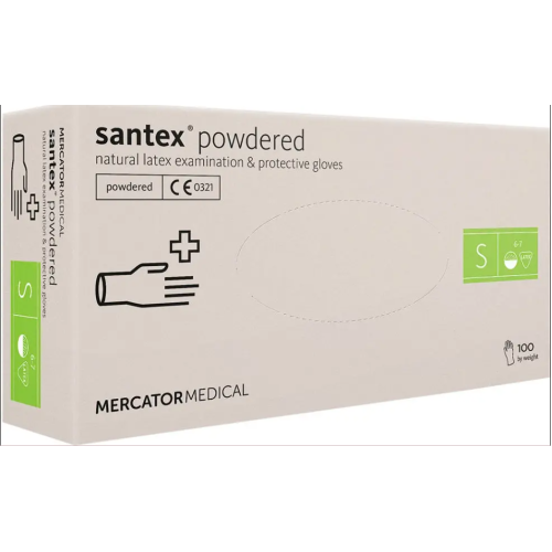Перчатки латексные SANTEX 6-7 S опудренные н/с 100 шт в уп
