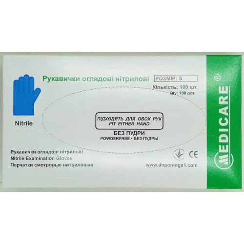 Перчатки нитриловые Перчатки нитрил Medicare 6-7 S синие 100шт в уп 00000901