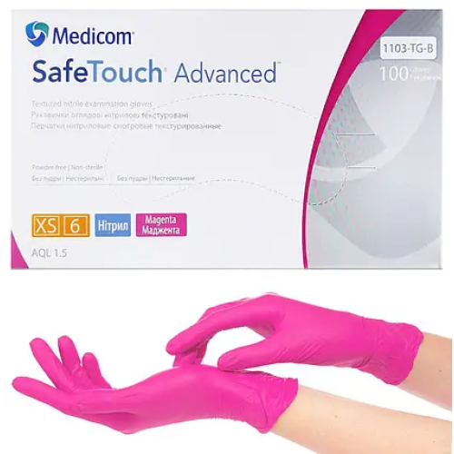 Перчатки нитриловые Перчатки нитрил Medicom Safe Touch 5-6 XS маджента ярко розовые 100 шт в уп (3,6гр) 1103TG