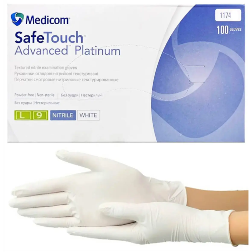 Перчатки нитриловые Перчатки нитрил Medicom Safe Touch Advanced Platinum White 8-9 L белые 100 шт в уп 000011