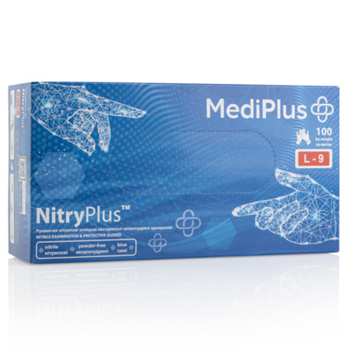 Перчатки нитрил MediPlus NitryPlus Blue 8-9 L голубые 100 шт в уп (3.8гр)