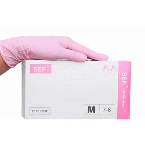 Перчатки нитрил SEF 7-8 M розовые 100 шт в уп (3,3гр)