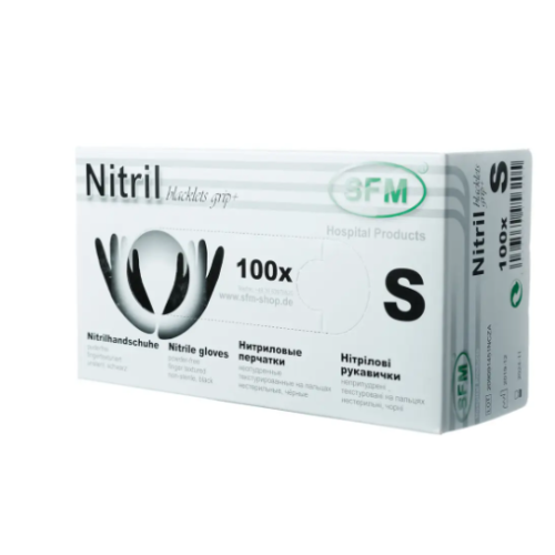 Перчатки нитриловые Перчатки нитрил SFM 6-7 S черные 100 шт в уп (3,8гр) 1689