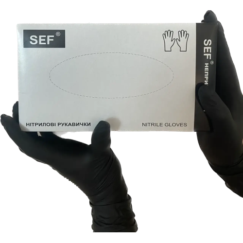 Перчатки нитрил SEF 7-8 M черные 100 шт в уп 3,5гр.