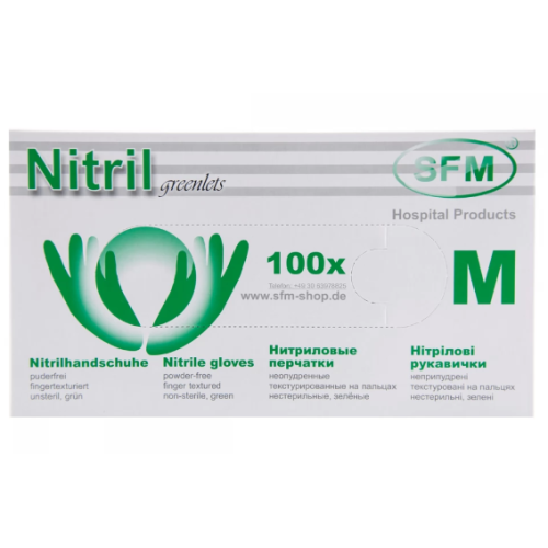 Перчатки нитриловые Перчатки нитрил SFM 7-8 M зеленые 100 шт в уп 2745