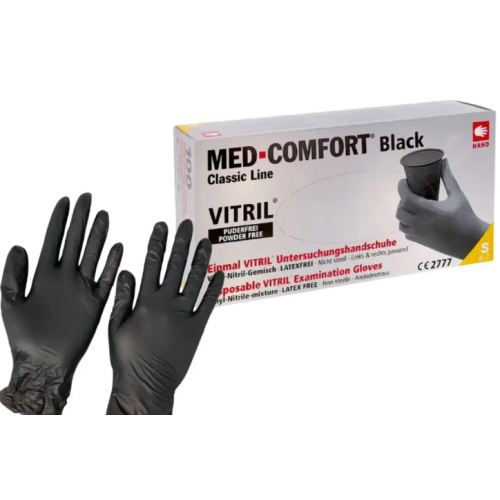 Перчатки витриловые Ampri Vitril by Medcomfort 6-7 S черные 100 шт в уп (6гр)