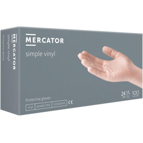 Перчатки виниловые Merkator simple vinyl powder free PF 8-9 L н/о н/с прозрачные 100 шт в уп