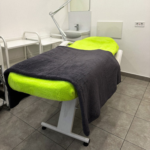 Несомненно, вопросы гигиены в салоне красоты стоят на первом месте. Но комфорт и эстетика – это те далеко не второстепенные качества, которые заставляют клиента возвращаться вновь и вновь. Темно-серый махровый плед-простынь изготовлен из мягкой двухсторонней махры и имеет размер 1,4 м *1,8 м. Края изделия обработаны белой ниткой. Плед не только легкий и приятный на ощупь, но довольно износостойкий и практичный. Он хорошо поддается чистке и стирке, хорошо поглощает влагу, имеет антибактериальные свойства и гипоаллергенен. Его можно использовать как для укрывания клиента во время процедуры, так и для покрытия кушетки или массажного стола. Продается в индивидуальной полиэтиленовой упаковке.