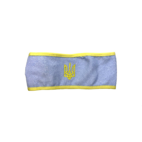Повязка махровая косметологическая голубая на липучке Тризуб Слава Україні!