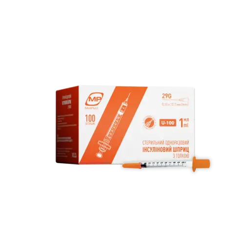Шприц инсулиновый 1.0ml U-100 G29 игла 0,33*12,7 мм MP MedPlast 1шт/уп