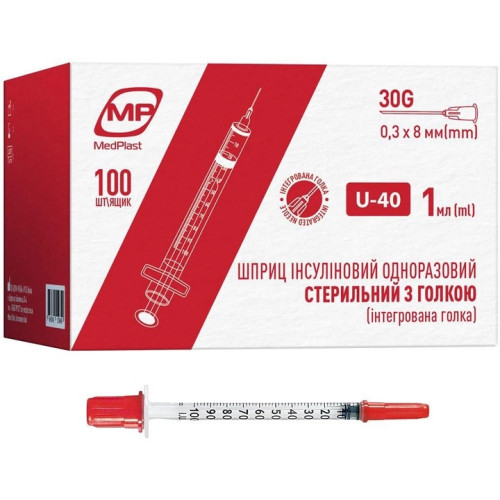 Шприц инсулиновый 1.0ml U-40 G30 игла 0,30*8 мм MP MedPlast 1шт/уп