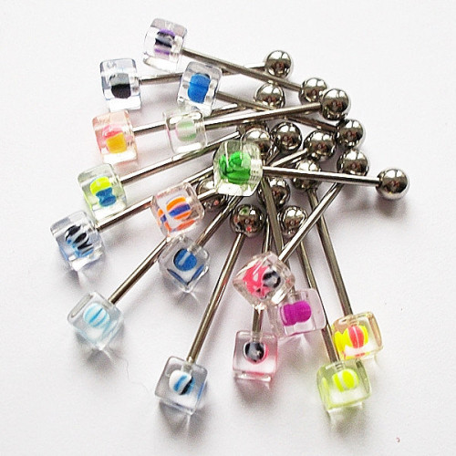 Штанга для языка "Конфетка" (медицинская сталь, акрил)
