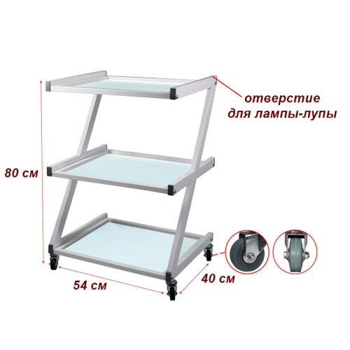 Тележка косметологическая на 3 полки лестницей стекло белая