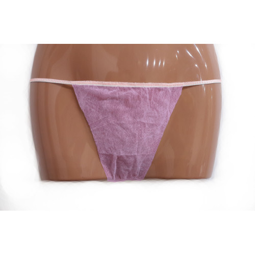 Стринги (трусики) женские одноразовые, голубые. Качественное и комфортное изделие из спанбонда, плотностью 23гр/м2. Высокая треугольная вставка спереди, тонкая полоска-стринг сзади. Резинка декорирована яркой ниткой. Упаковка: каждый стринг упакован в одноразовый п/э прозрачный пакет. Общее количество штук в упаковке 50+1шт. Используются как одноразовый расходный материал в косметологии для проведения: депиляции, массажа, SPA-процедур, обертываний и других процедур по телу. Резинка в изделии специально подобрана для комфорта работы с клиентом во время процедуры: мягкая, не врезается в тело, хорошо тянется, что облегчает в работе ее перемещение.