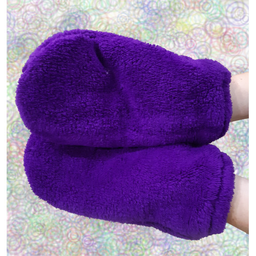 Варежки махровые для парафинотерапии качественное и комфортное изделие из мягкой двухсторонней махры Велсофт черничного цвета на шнурке-завязке белого цвета. Края шнурка украшены бусинками серебряного цвета.Ткань нового поколения Велсофт имеет ряд бесценных качеств, благодаря которым варежки из нее обладает мякгостью и необыкновенной нежностью, легкостью, прочностью и хоротшей носкостью, сохранением красок, великолепной терморегуляцией, гигроскопичностью и воздухоненпронепроницаемостью, антибактериальными свойствами, гипоаллергенностью, безопасностью и простотой в уходе.